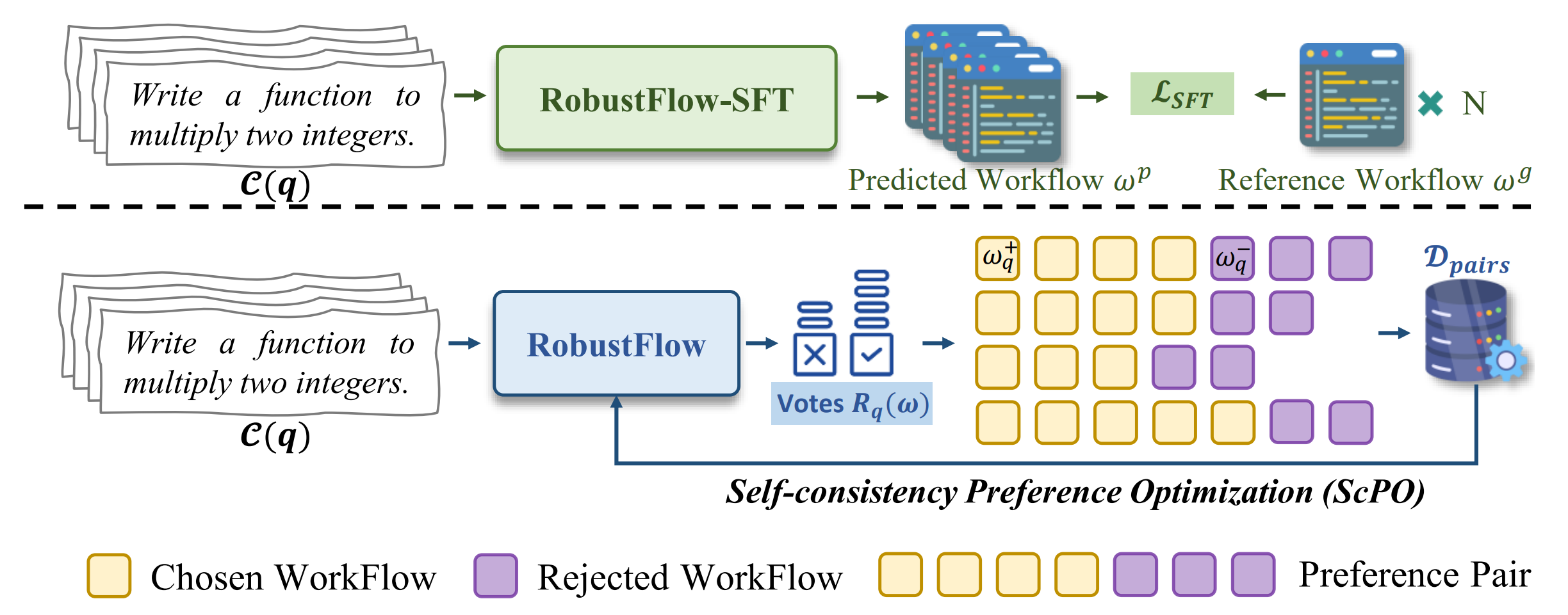 TL;DR: 通过偏好优化实现了高度鲁棒的智能体工作流自动生成,显著提升了工作流生成的可靠性。